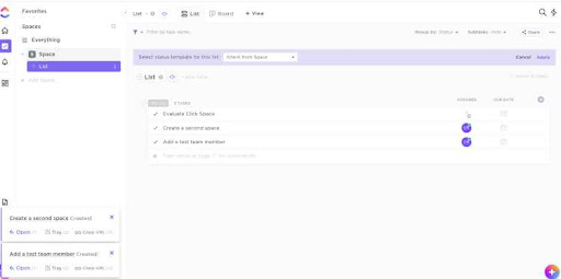 ClickUp allows users to organize their project into a number of different views from lists, calendar, Kanban style boards or Gantt charts. Each user can set up a number of spaces designed to house details about their projects. Additionally, individual tasks can be filtered by status, and subtasks can be hidden or displayed to reduce visual clutter.