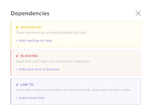 If Users’ workflows are being held up by colleagues, then ClickUp makes it easy for team members to signal exactly what is causing the delay. Users can: